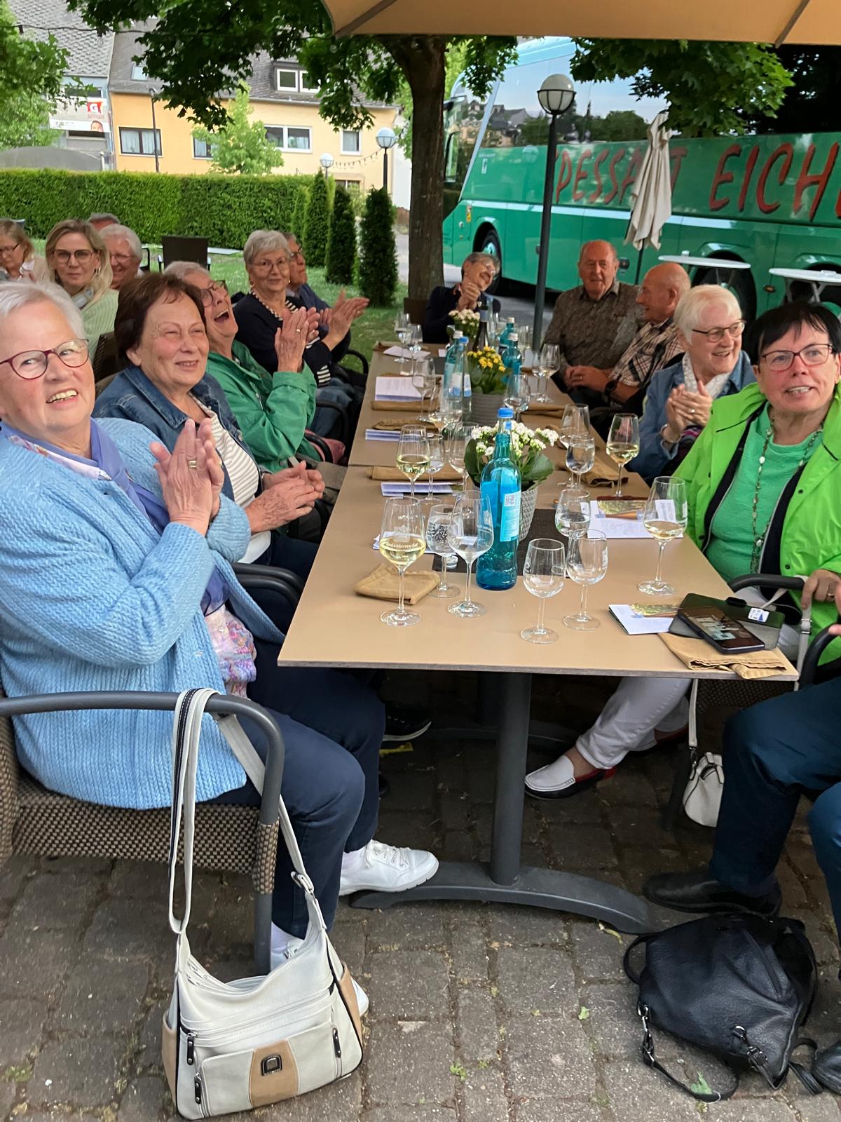 Reich an Erkenntnissen und vielen schönen Eindrücken hat man sich nach der Rückfahrt im Familienweingut "Deutschherrenhof" in Trier eingefunden. Dort wurden im tollen Ambiente des Winzergartens 6 Weinproben kredenzt und ein passendes Abendessen serviert.