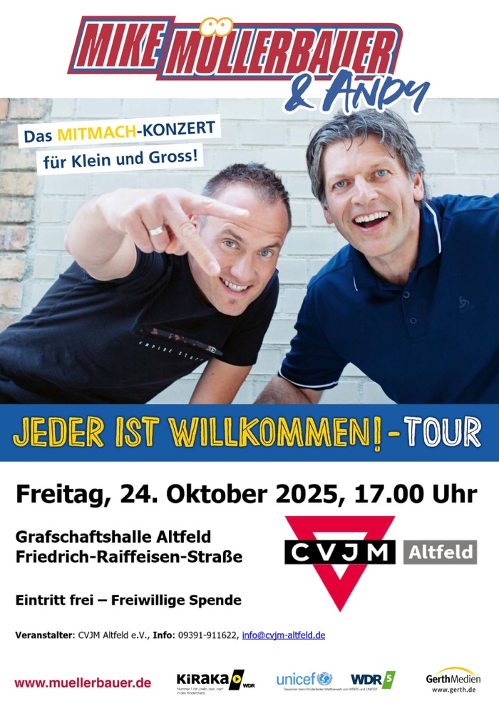 Der CVJM Altfeld e.V. lädt ganz herzlich zu dem Mitmach-Konzert "Jeder ist Willkommen!" ein.
